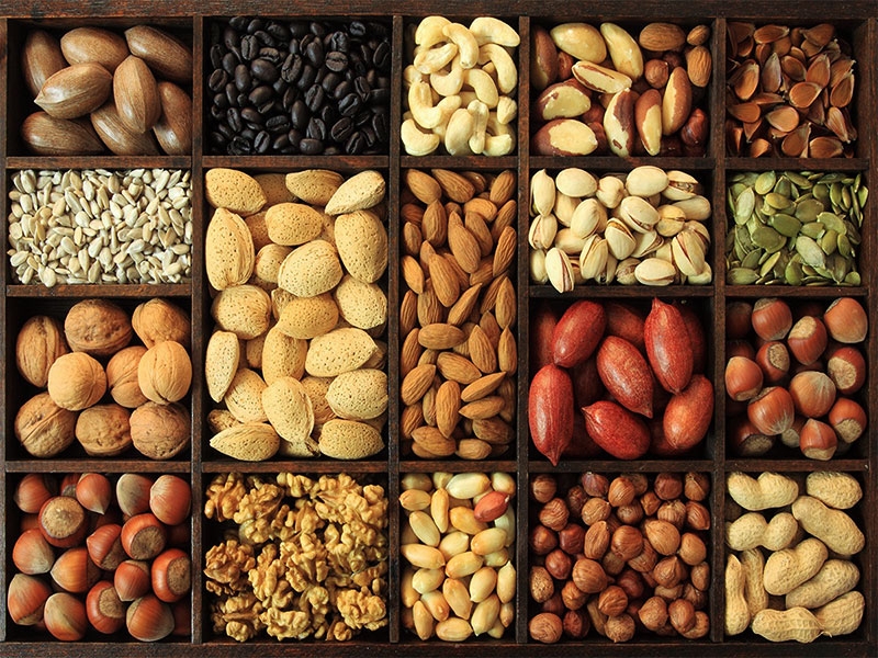 Các loại hạt như: óc chó, hạt điều, hạt hướng dương, hạt bí, đậu phộng… Đây là những loại hạt dùng để ăn vặt khá hữu ích cho phái mạnh. Những loại hạt này ngoài chứa kẽm dồi dào còn có thành phần Arginine – là một acid amin cần thiết cho việc sản xuất Nitric Oxide, giúp quá trình lưu thông máu tốt hơn, góp phần cải thiện tình trạng rối loạn cương ở nam giới.
