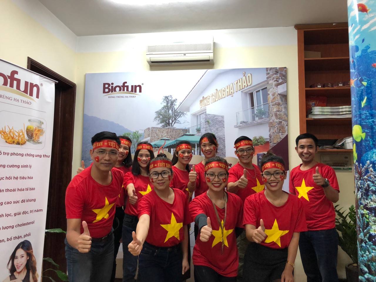 Đội ngũ văn phòng Đông Trùng Hạ Thảo Biofun - Hà Nội cổ vũ Việt Nam